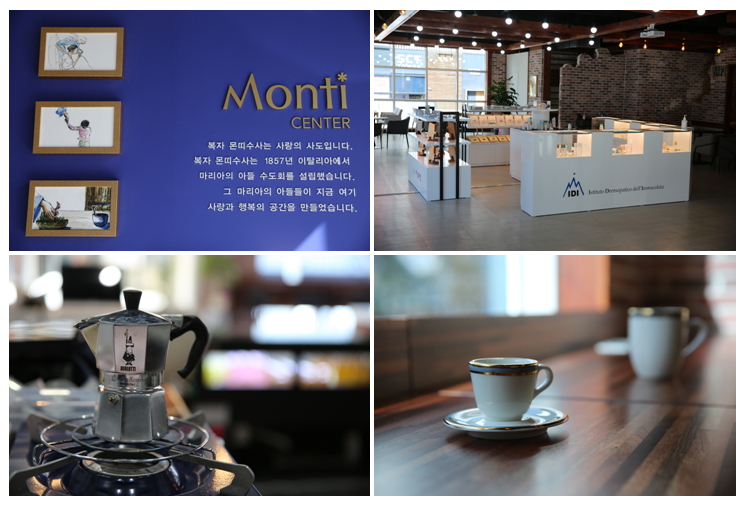 모카포트(Moka-Pot) 전문점인 카페에서는 커피와 함께 당일 구운 스튜르델, 스콘 등의 다양한 빵을 맛볼 수 있습니다. 카페 중앙에 설치된 수도회 사도직 쇼케이스 디스플레이에는 이디코리아 화장품, 지적장애인 거주시설 ‘하늘의 별’이 제작한 도마 등의 제품, 월간지 ‘가톨릭 비타꼰’, 도서출판 가톨릭 비타꼰 서적 등이 전시돼 있습니다.(현장에서 구입 가능)