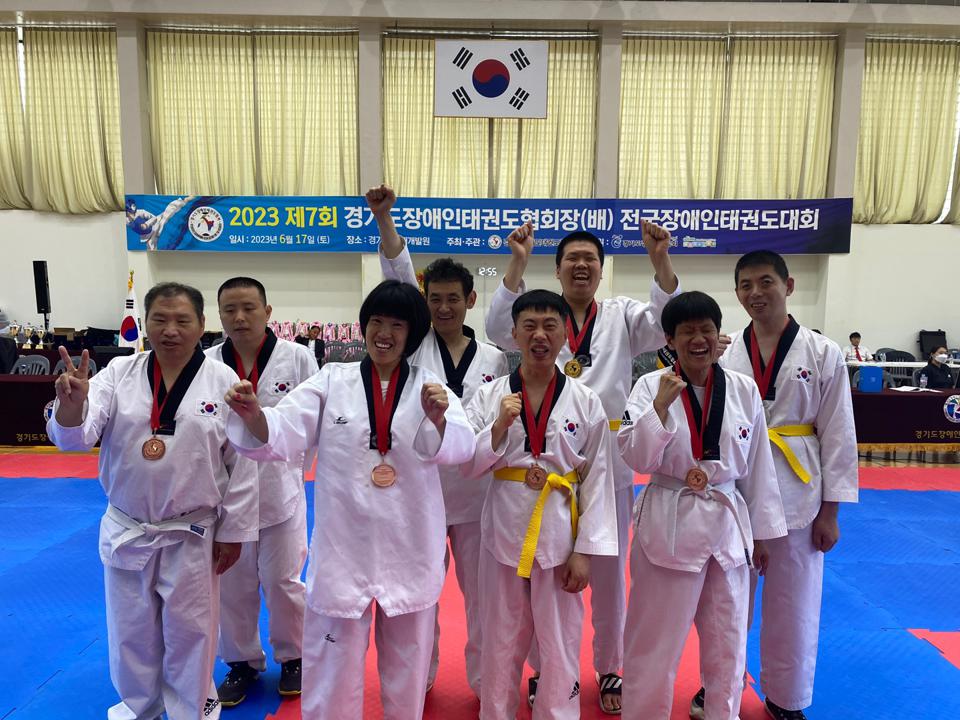 2023년 6월 17일 그동안 탄탄하게 다진 태권도 기본기를 바탕으로 경기도 인재개발원에서 열린 전국장애인태권도 대회에 참가하였습니다.